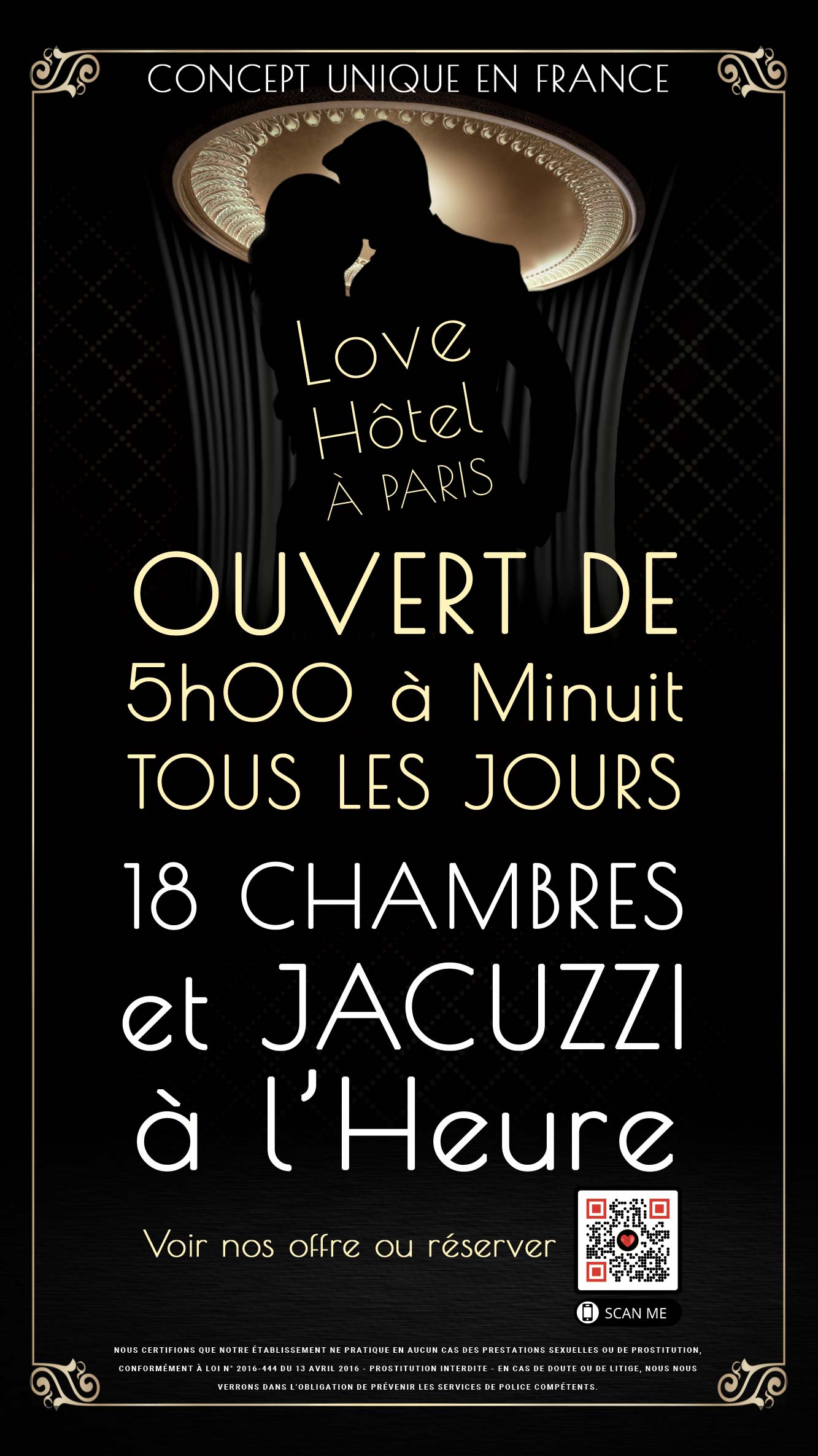 Situé au 20 rue Berthollet 75005 Paris, le Seven Hotel propose à ses clients 3 chambres et 7 suites de luxe aux noms un peu particuliers : 7ème ciel, 7ème péché, 7ème jour, etc. Avec une décoration à la fois élégante et moderne, les suites ont tout pour plaire. Pour les amateurs de cinéma, le Seven Hotel possède une chambre plus colorée que les autres. Le thème de la décoration de cette dernière tourne autour du cinéma. On retrouve à l’intérieur un canapé en velours rouge et des projecteurs de plateaux. Certes, ce n’est pas un hôtel libertin proprement dit, mais on peut y passer un moment inoubliable avec son partenaire. Pour un week-end romantique à paris, c’est la meilleure adresse.